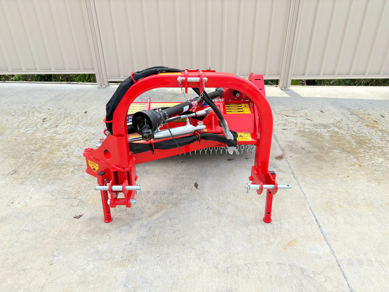It features hydraulic side-shift for working below the foliage of trees and for reaching into ditches and up embankments. Its main feature is flexibility and ability to cut grass and small shrubs outside the width of the tractor.