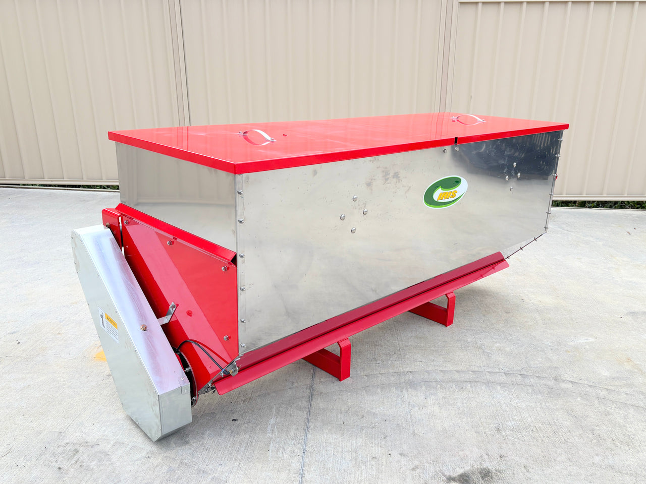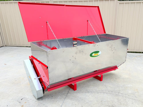 The Iris ILS-3000H 900L 3 Point linkage mounted Lime spreader with hydraulic drive , is for Spreading powdered fertiliser or lime in a row directly behind the tractor without blowing it into the air and coating the neighbourhood